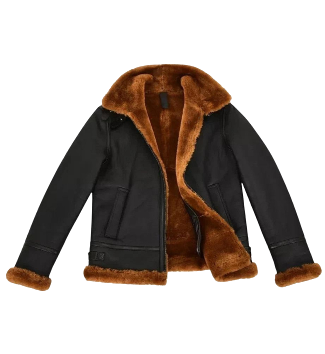 Men B3 – Black Dark Ginger Fur Shearling Pilot Bomber Jacket – Classic Style & Warm Lining