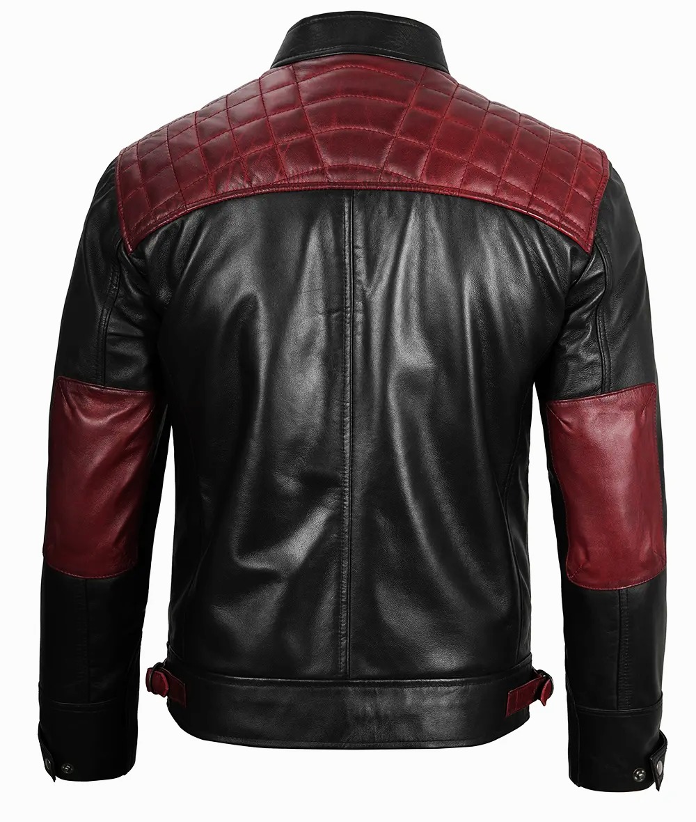 Men’s Black and Maroon Cafe Racer Leather Jacket – Quilted Shoulder
