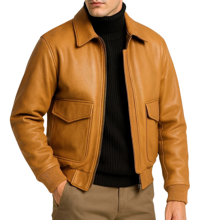 This Men’s Genuine Sheepskin Leather Bomber Jacket is designed with a timeless vintage flight style, combining classic aviation heritage with modern comfort. Crafted from premium real sheepskin leather, it offers a soft texture, lightweight feel, and durable structure. Perfect for everyday wear or winter layering, this jacket delivers effortless style with a rugged edge.