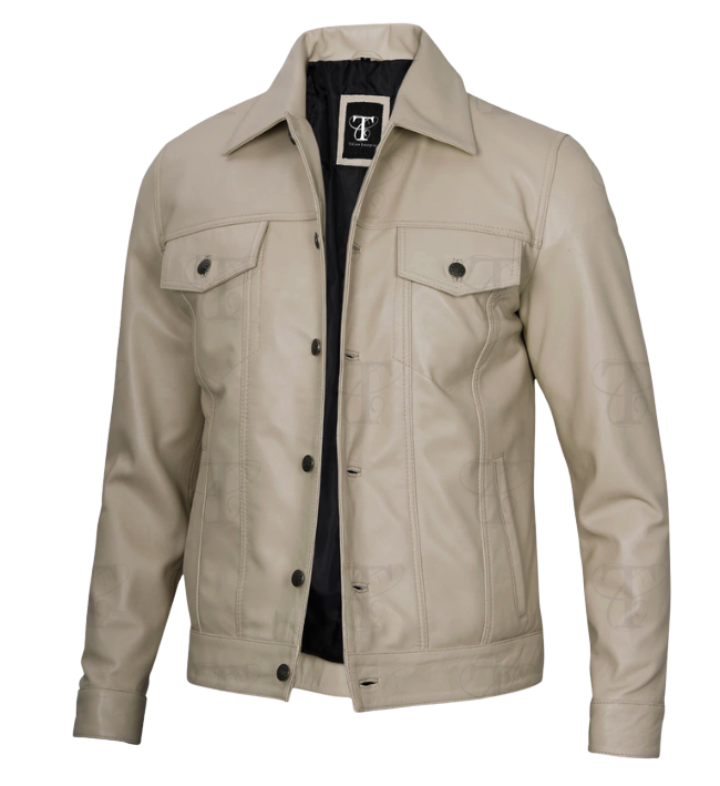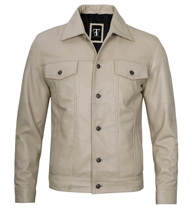 TriCore Men’s Off-White Lambskin Leather Jacket – A Timeless Statement of Style